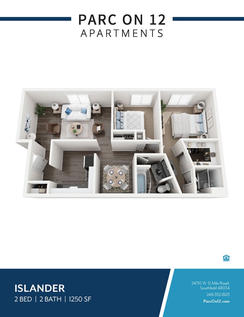 Apartment Model: Islander - New YorkerFrom $1,2502 Bedroom, 2 Bath, 1250-1350 sq ftAvailable Now![]()