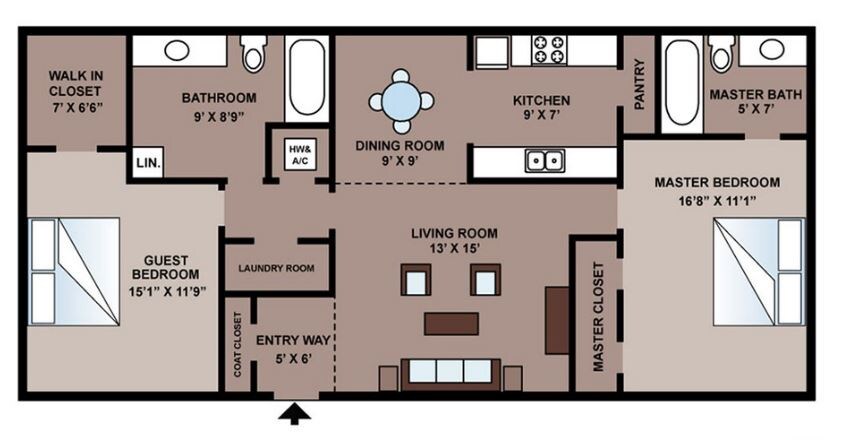 2 Bedroom, 2 Bathroom (Classic) - Floorplan 1 ![]()