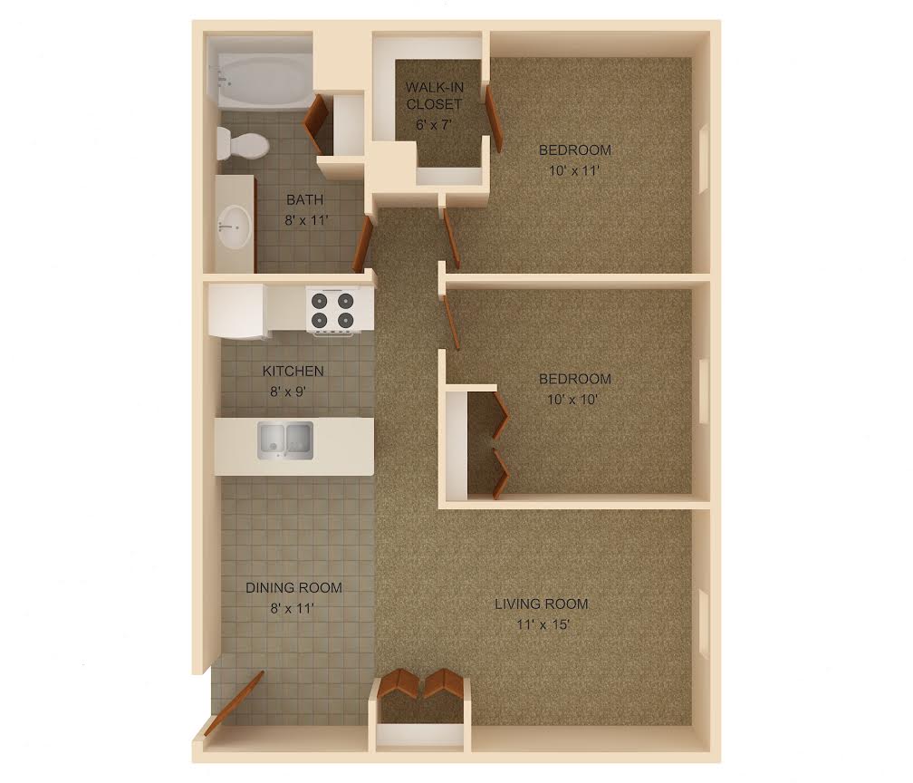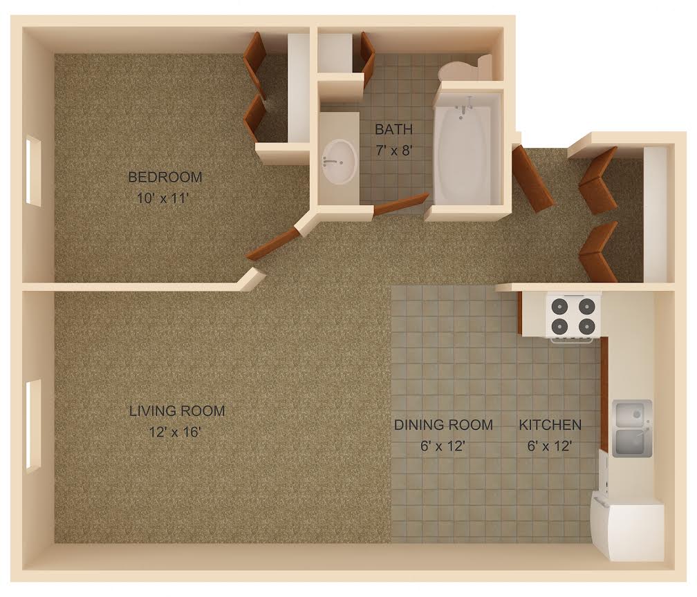 August 7, 2015We moved in June 1st of this year, (2 bdrm). Some of the positive things, they have a good price for rent, a decent location and for the most part it stays very quiet and clean. Among the negatives, the management is not very good as we were supposed to have some things fixed before we moved in (Counter edges coming off, warped closet boards), however none of the repairs have been made and we've already been here over two months...Review from Apartments.com
