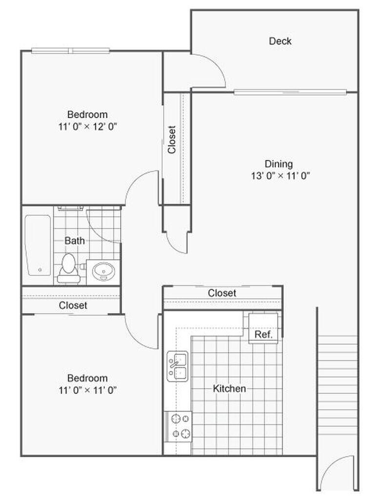 2 Beds, 1.5 Baths, 986 sq ftAvailable NowLargest 2 BedroomThis is the largest 2 Bedroom at this PropertyModel Gallery