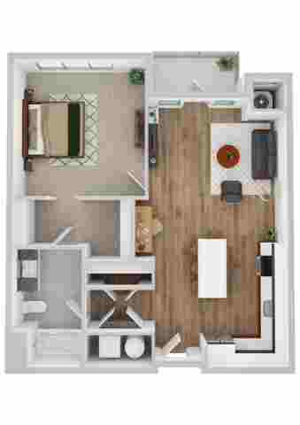 1 Bed, 1 Bath, 593 sq ftModel Gallery