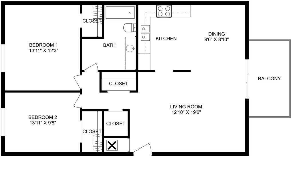 2 Beds, 1 Bath, 1012 sq ftAvailable Dec 19Model Gallery