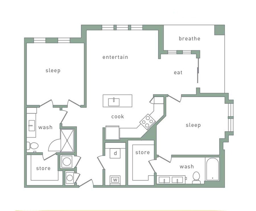 GlenIris I - Floorplan 2 Apartment Unit: 1-553Apartment Model: GlenIris IFrom $1,8351 Bedroom, 1 Bath, 844 sq ftAvailable NowCrestline M