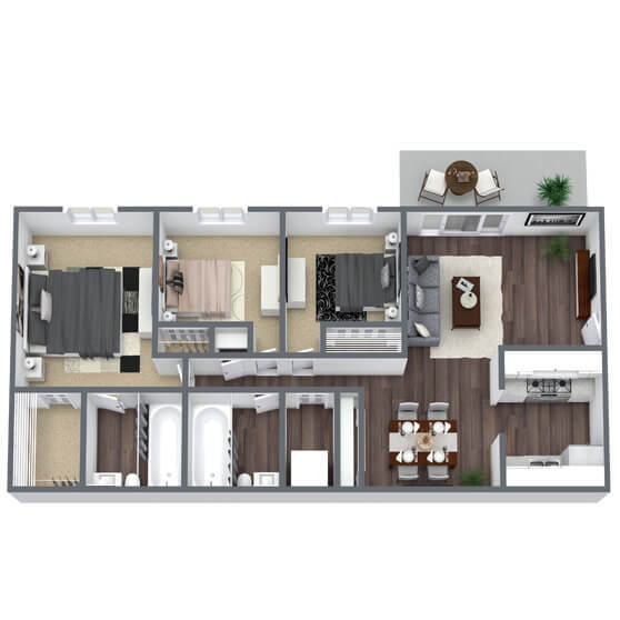 Studio to 3 Bedroom Apartments at Park @ 7200 currently range from $1,038 to $1,803