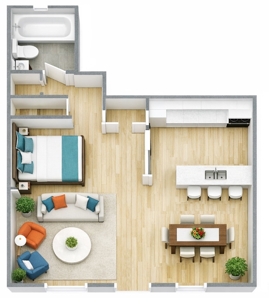 One Bedroom One Bath - Floorplan One Bedroom One Bath - 3D Tour One Bedroom One Bath - 3D Tour 2 Bedrooms
