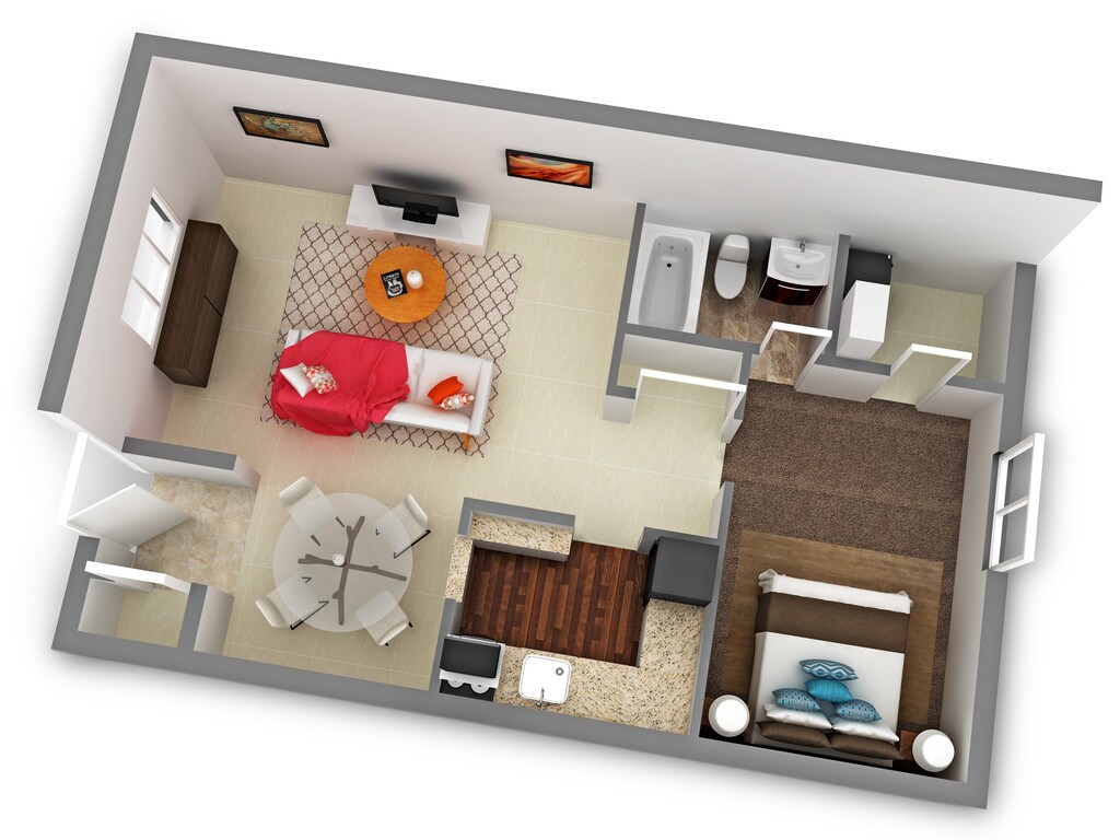 1 Bed, 1 Bath, 644 sq ftModel Gallery