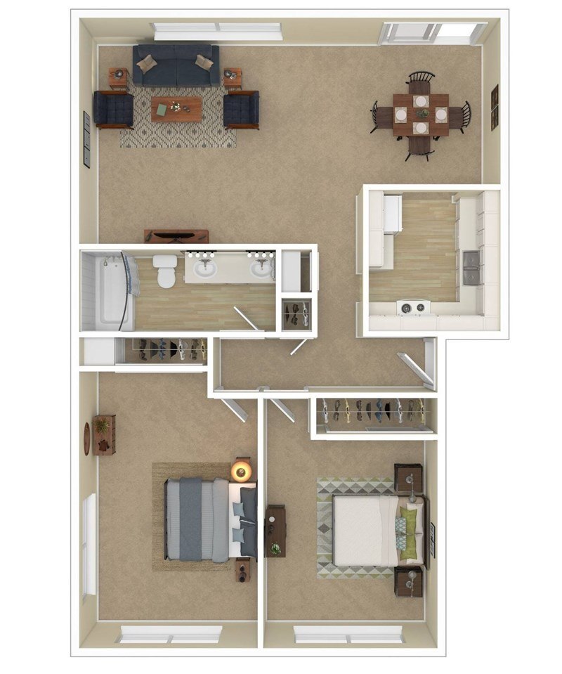 2 Beds, 2 Baths, 980 sq ftAvailable NowLargest 2 BedroomThis is the largest 2 Bedroom at this PropertyModel Gallery