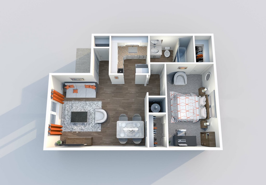 1 Bed, 1 Bath, 604 sq ftModel Gallery