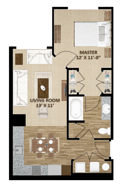 Apartment Model: A1$1,5591 Bedroom, 1 Bath, 648 sq ftAvailable Now![]()