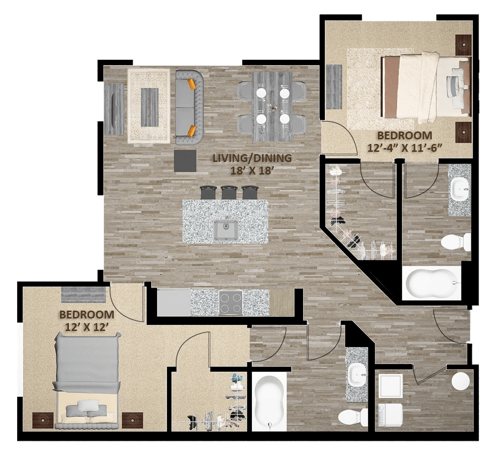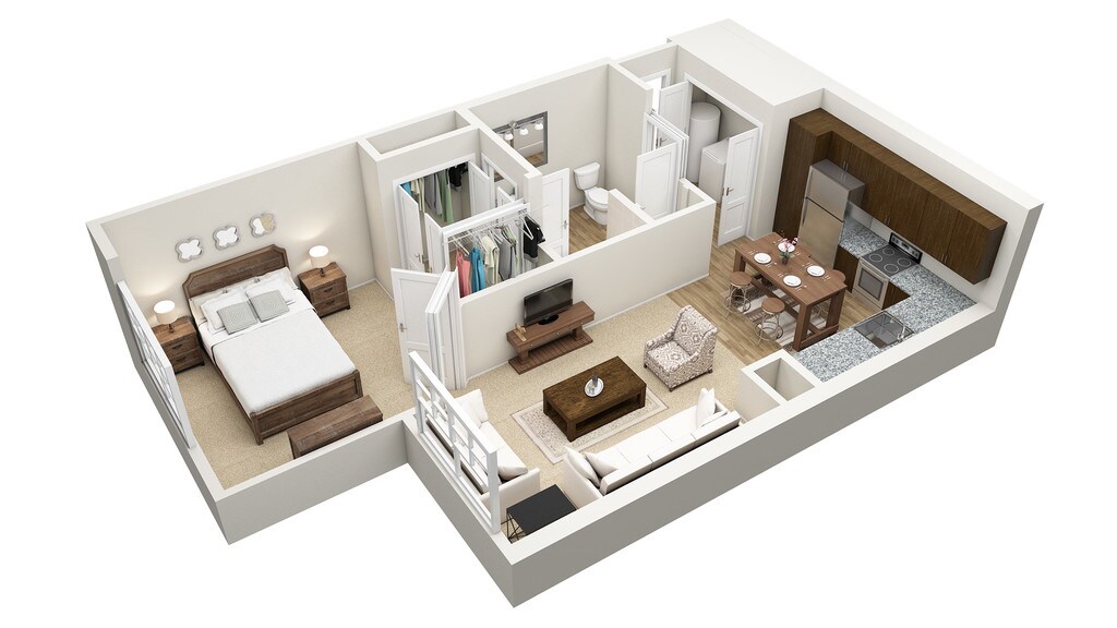 1 Bed, 1 Bath, 628 sq ftModel Gallery