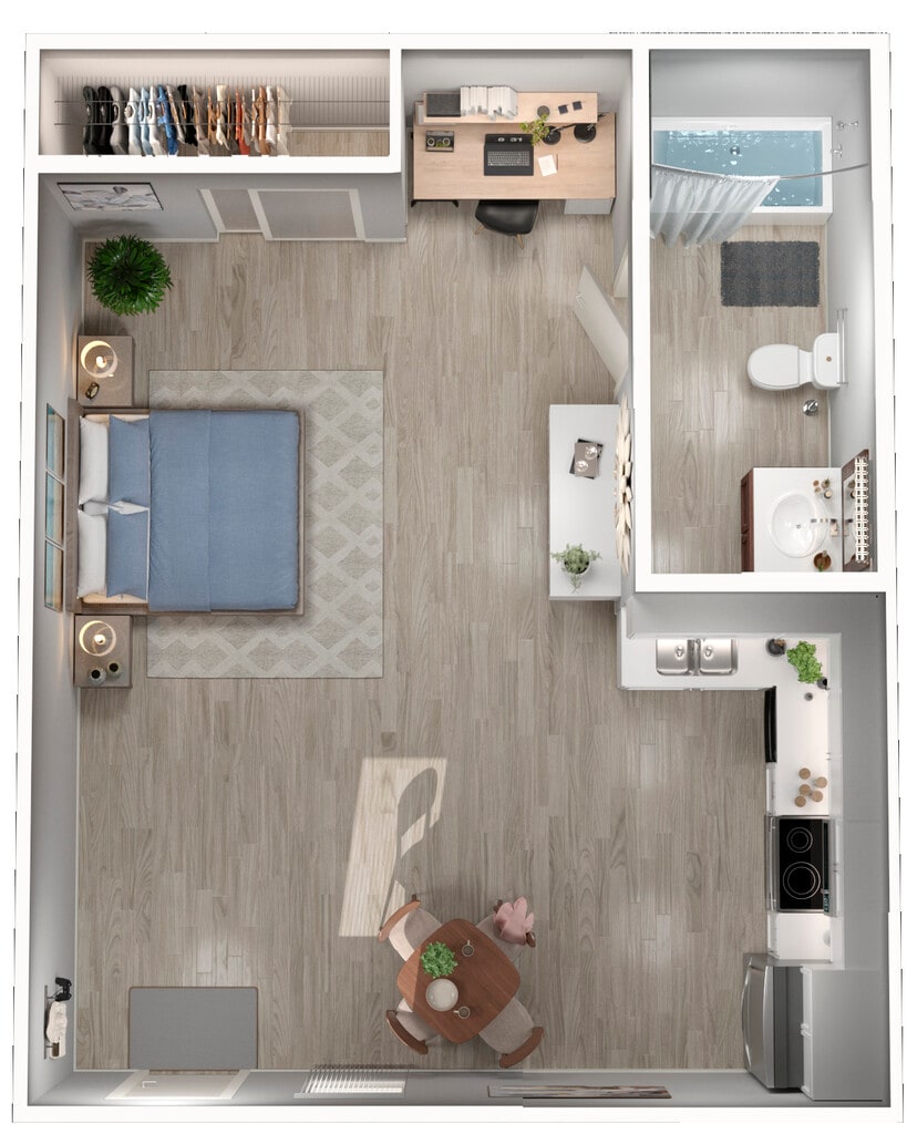 Studio, 1 Bath, 390 sq ftTotal Monthly PriceAvailable NowModel Gallery