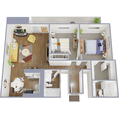 2 Beds, 2 Baths, 1106-1191 sq ftAvailable NowLargest 2 BedroomThis is the largest 2 Bedroom at this PropertyModel Gallery