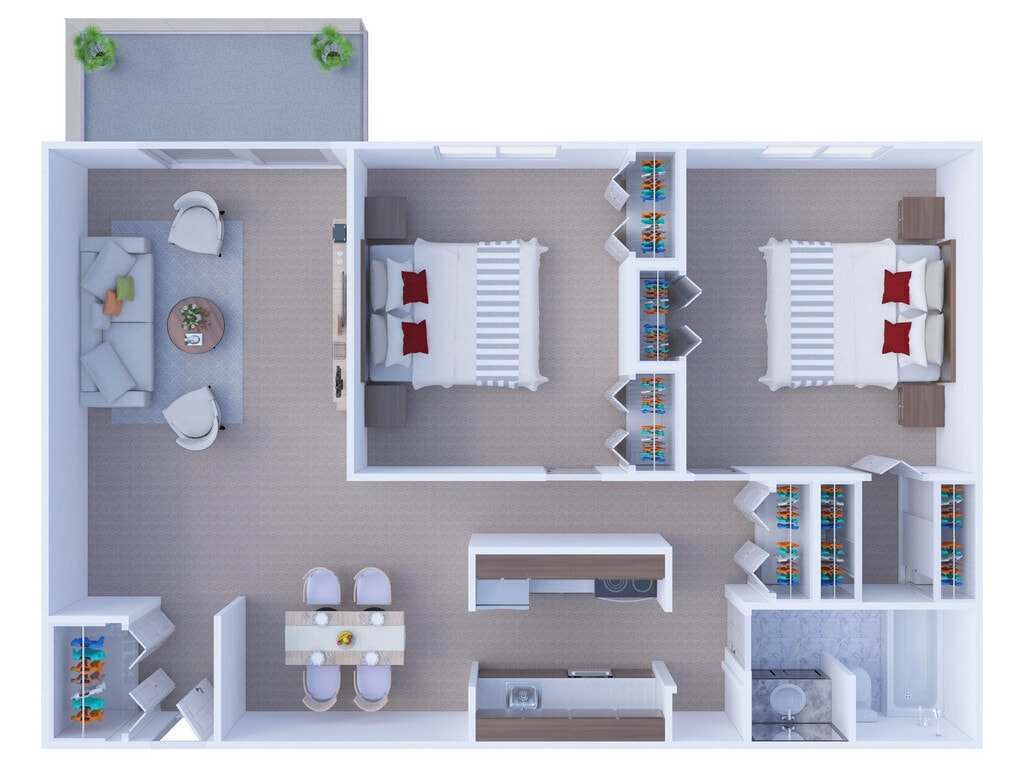 Apartment Model: 2 Bedroom Floor Plan B2From $1,7222 Bedroom, 2 Bath, 1088 sq ftAvailable Now![]()