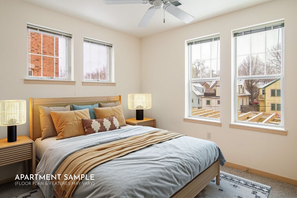 1 Bedroom - Market Rate F Style - Southeast Facing - Corner Unit Apartment Features Include - Balcony/Patio - In-Unit Washer and Dryer - Oversized Windows - Tub/Shower Combo - Vinyl Plank Flooring* - Window Coverings *Offered in Select Apartments Tenant Liability Insurance Required. (Minimum coverage of 100K) (Pricing, inclusions, and eligibility subject to change)