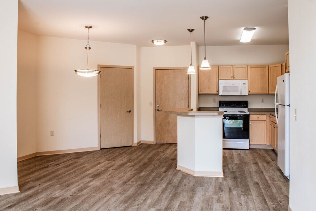 1 Bedroom - Market Rate P Style - Northwest Facing Apartment Features Include - Balcony/Patio - Breakfast Bar - In-Unit Washer and Dryer - Laundry Room - Tub/Shower Combo - Vinyl Plank Flooring* - Window Coverings *Offered in Select Apartments Tenant Liability Insurance Required. (Minimum coverage of 100K) (Pricing, inclusions, and eligibility subject to change)