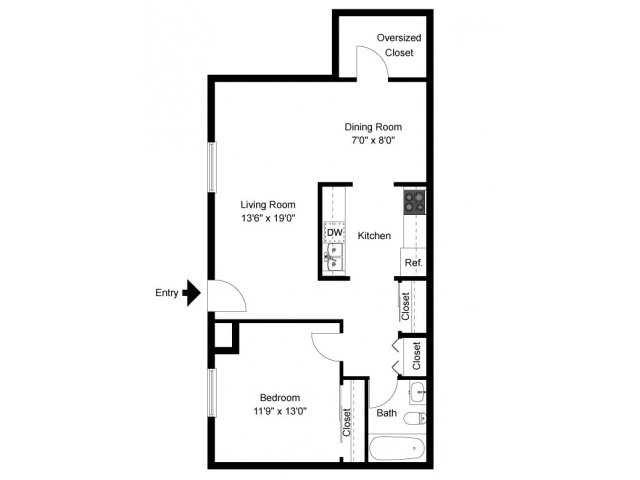 One Bedroom Private Entry - Floorplan 1 ![]()