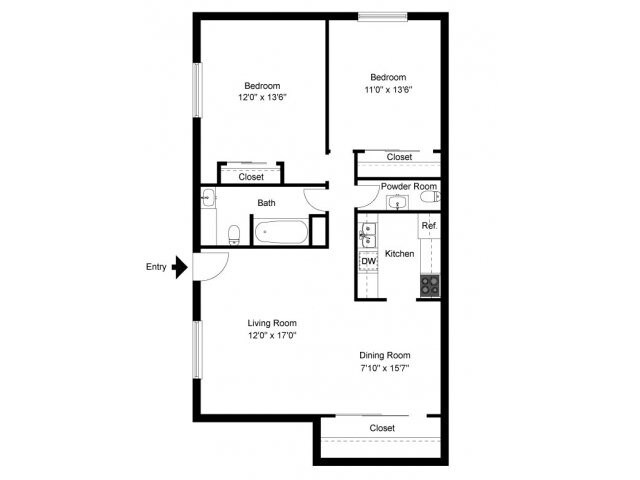 Two Bedroom - Floorplan 2 Two Bedroom 1.5 Bath Private Entry