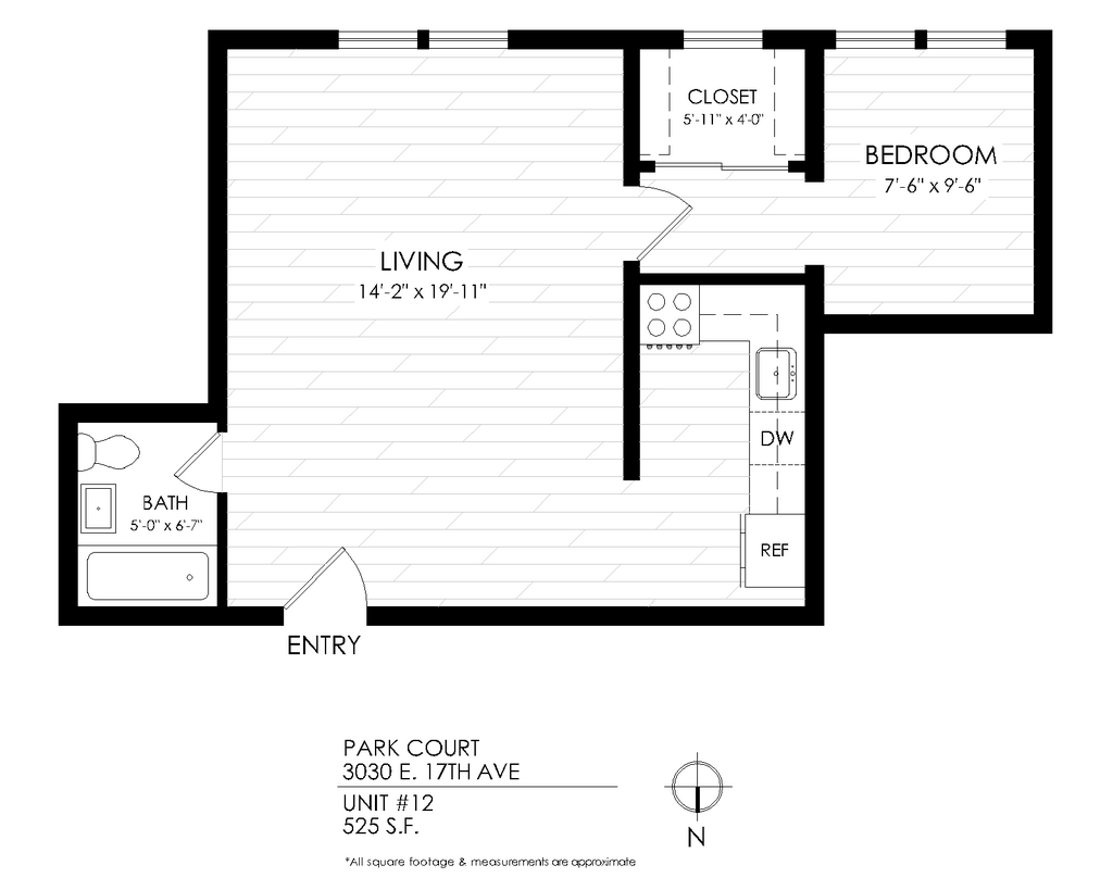 Studio-Hardwood - Floorplan 1 Studio