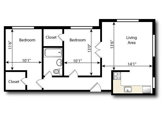 1 Bedroom-Hardwood - Floorplan 2 2 Bedrooms