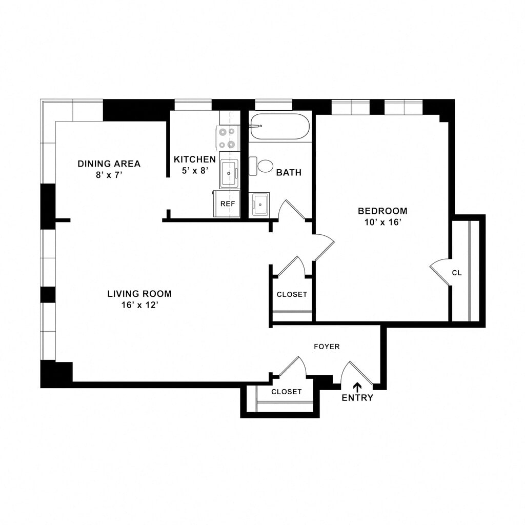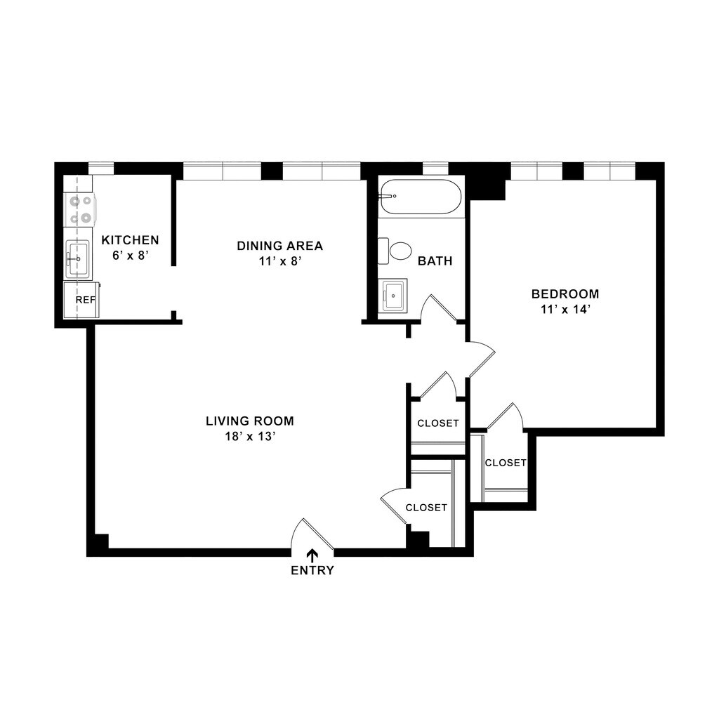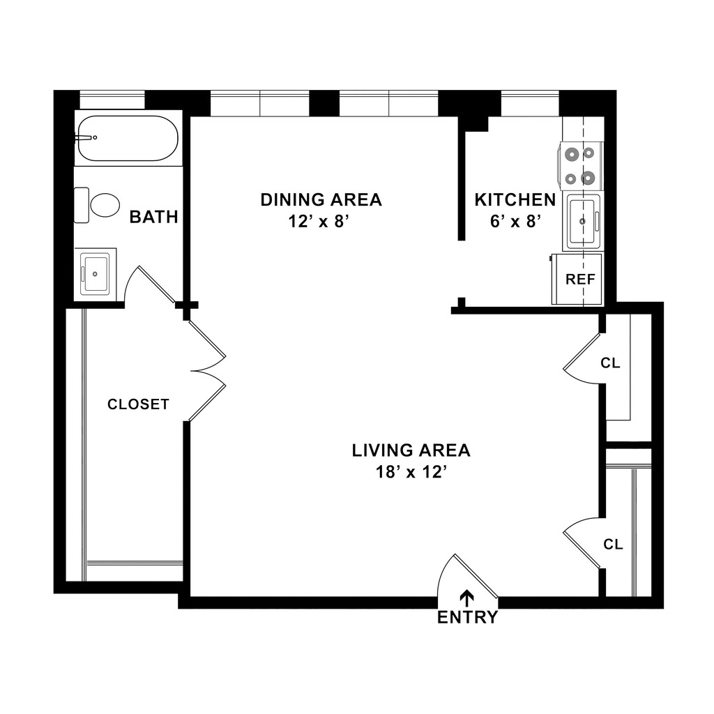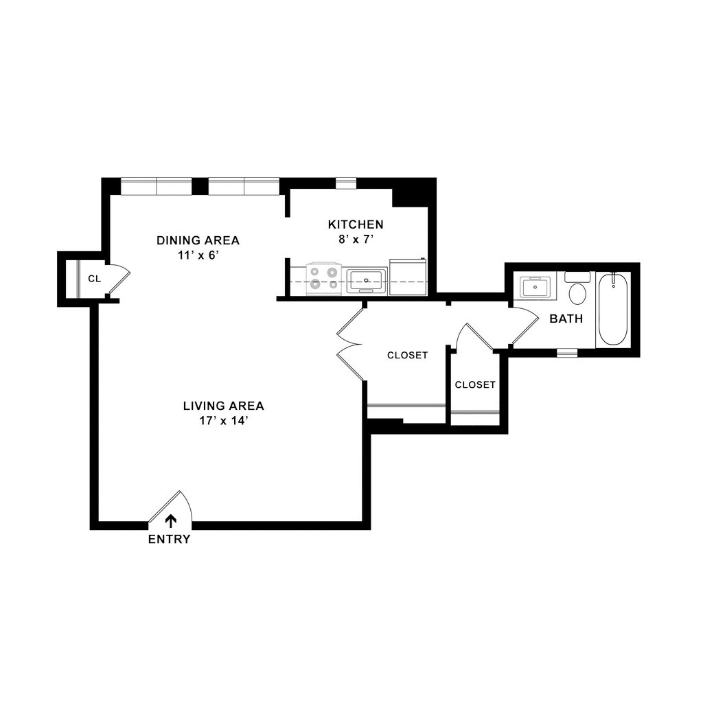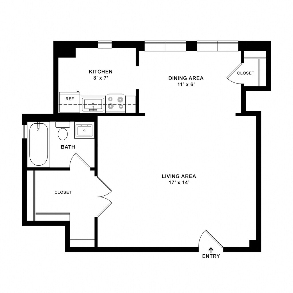STUDIO - Floorplan 5 Apartment Unit: 110Apartment Model: STUDIOStudio, 1 Bath, 500 sq ftAvailable Now![]()