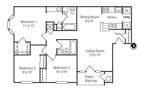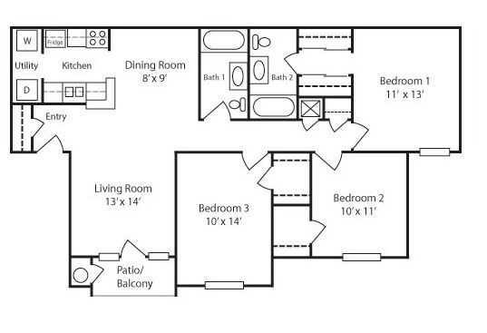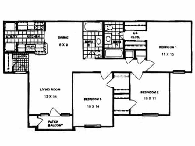 Apartment Model: 3 Beds, 2 baths$1,9003 Bedroom, 2 Bath, 1100 sq ftAvailable Now3 Beds, 2 baths - Floorplan 1 3 Beds, 2 baths
