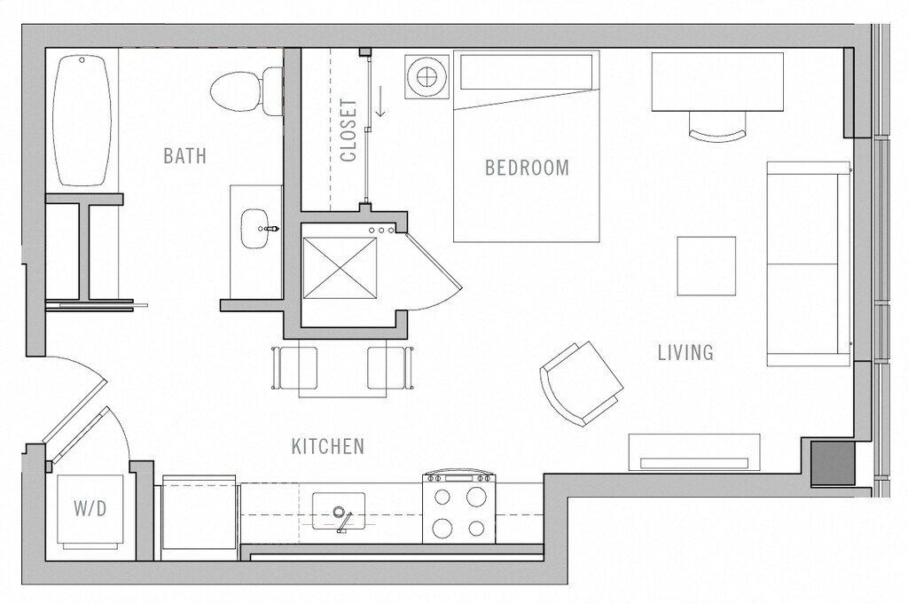 Studio, 1 Bath, 610 sq ftAvailable NowModel Gallery