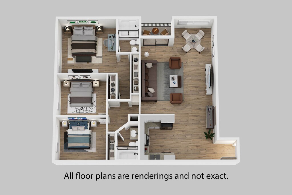 2 Bedroom + 2 Bath - Floorplan 1 3 Bedrooms