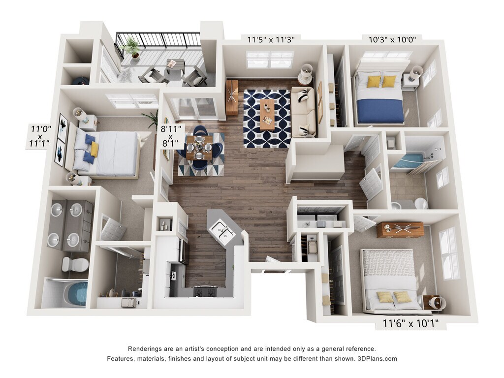 Apartment Unit: AUCMLEApartment Model: 3 Bedroom 2 Bathroom$3,7503 Bedroom, 2 Bath, 1270 sq ftAvailable December 1, 2025