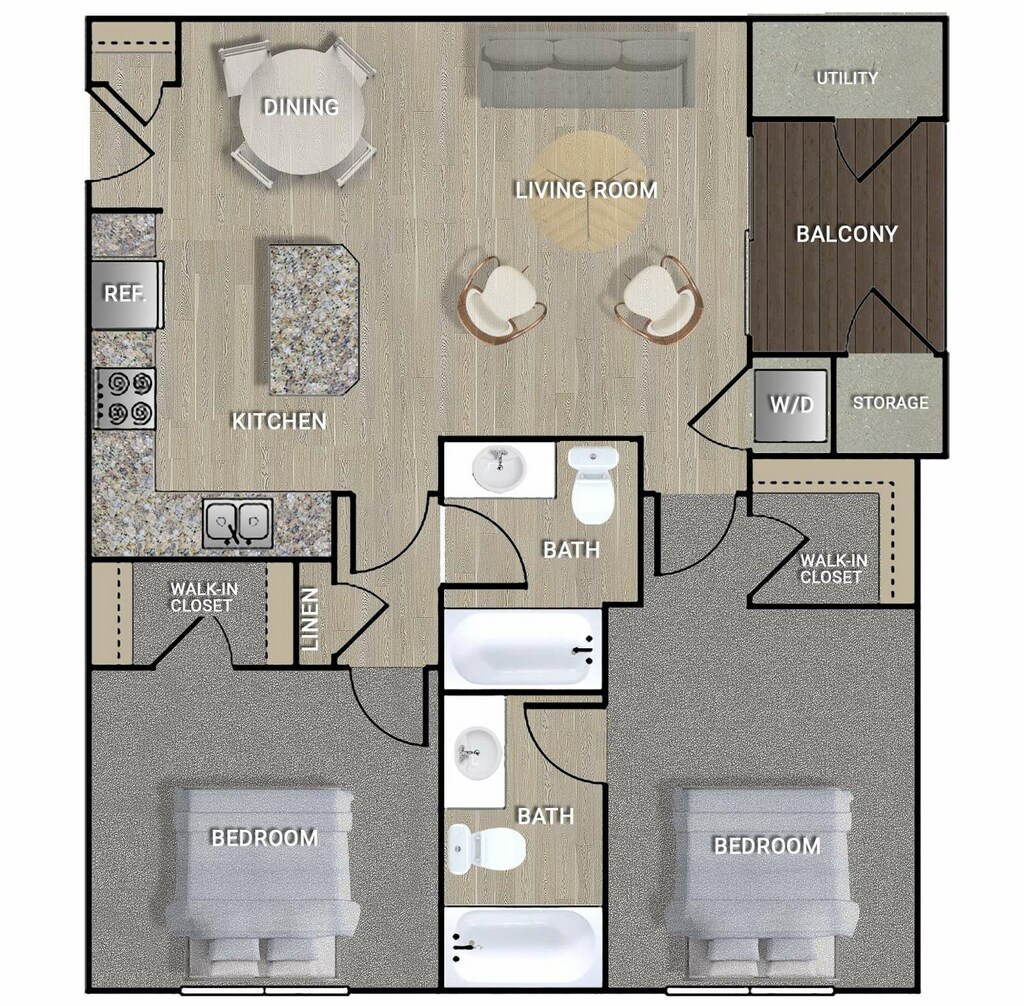 2 Beds, 2 Baths, 1010 sq ftAvailable NowCheapest 2 BedroomThis is the cheapest 2 Bedroom at this PropertyModel Gallery