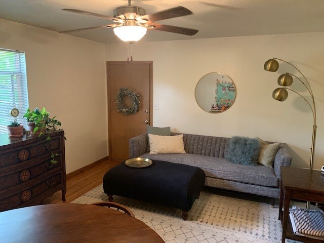 These are charming 1 BR units in a red brick retro building designed by our grandfather and built by our father. The property is still family owned and operated today. This particular unit has a new kitchen: self closing cabinets, granite countertop, dishwasher and built in microwave and a new bathroom. It's a second floor unit with views of Brookside Park, the Trolley Trail and South Plaza area. It has a wonderful view and in a superb area! No dogs or cats. The apartments are conveniently located in a quiet Brookside neighborhood overlooking a park. Close to The Plaza, the Nelson Atkins Museum, just south of UMKC, and by the bus line at the corner of the park. Enjoy the Trolley Trail at the bottom of the hill. In each unit: Fiber jack for internet, free for at least the first year Living Room with large window; Newly updated bathroom with pedestal sink, medicine cabinet and tub/shower; Bedroom with extended closet, ceiling fan and large window; More storage closets in the hall: An extended closet and a small linen closet; Kitchen with refrigerator/freezer & new counter top; Central Heat, window AC units; Hardwood floors in living room, hall and bedroom. No carpet A fabulous area with really nice neighbors. No additional monthly fees other than rent. Exterior / Common Use Secured building entry; Nice, light and spacious laundry room with ping pong table; 12 constantly recording digital security cameras with infrared (night) vision; Good exterior lighting; Low trimmed exterior landscaping; Phase 2 out of 3 phases in the Crime Free Multi Housing Program; Near Public Transportation; FREE off Street Parking in rear parking lot; Park offers: baseball field, winter sledding hill, pickle ball, tennis and sand volleyball