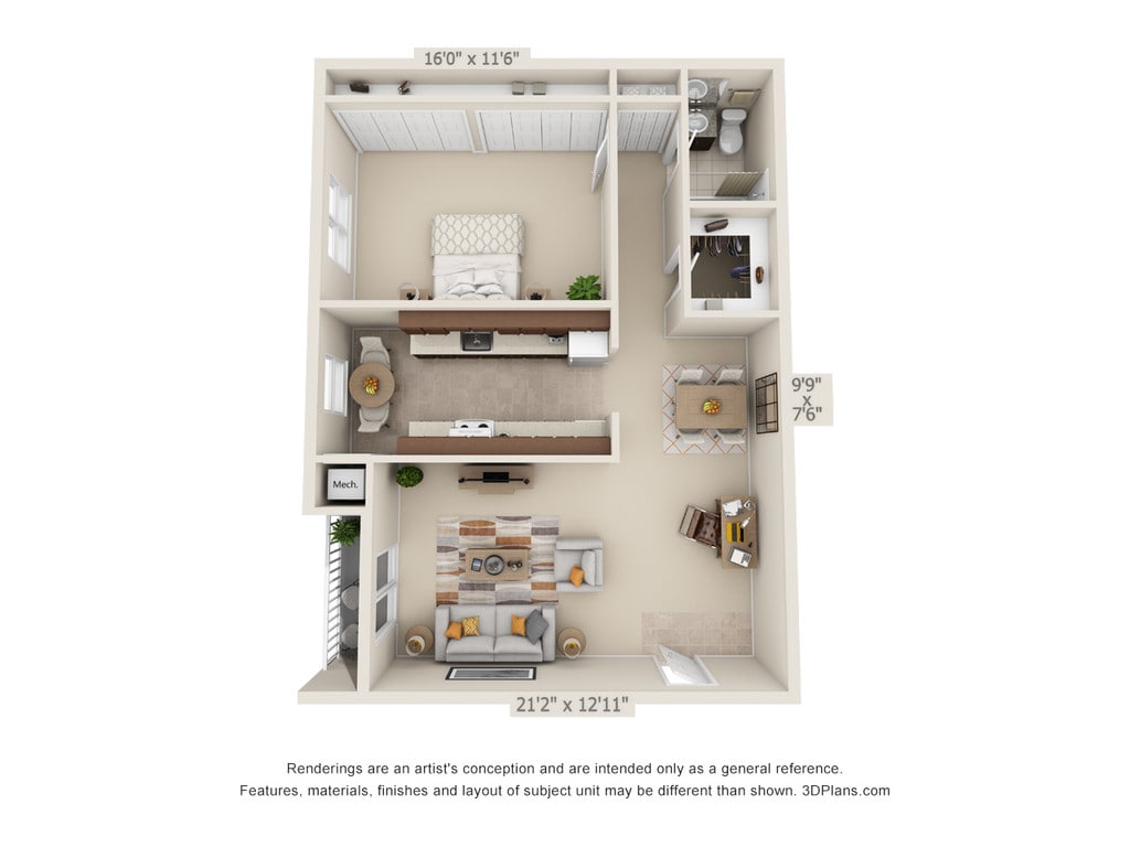 1 Bed, 1 Bath, 725-948 sq ftLargest 1 BedroomThis is the largest 1 Bedroom at this PropertyModel Gallery