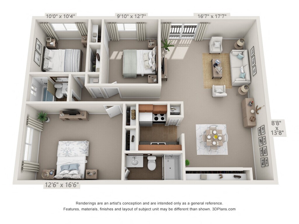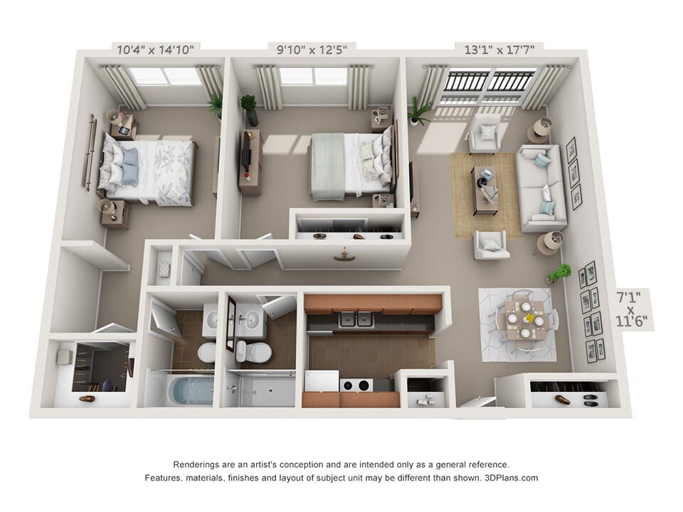 2 Beds, 1 Bath, 750 sq ftAvailable NowModel Gallery