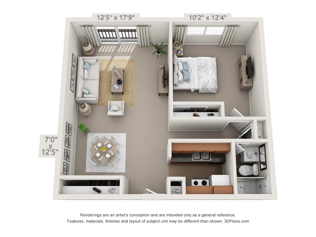 1 Bedroom, 1 Bath B - Floorplan 7 ![]()