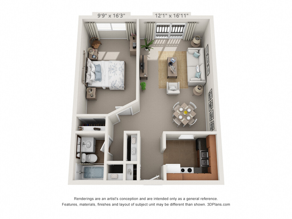 Apartment Model: 1 Bedroom, 1 Bath A1 Bedroom, 1 Bath, 560 sq ftAvailable December 10, 2025FloorplansPhotos![]()