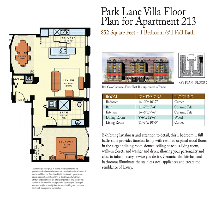 Park Lane Villa offers 1 to 3 Bedroom apartments starting from $1,820 and having 757–2,300 sq ft. Here is the current pricing and availability: