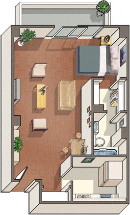 Studio, 1 Bath, 500 sq ftModel Gallery