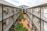 Park Mesa apartment homes offer quiet and quality living near the beautiful Boulder foothills. Our apartments have been extensively remodeled and feature premium finishes such as granite countertops, ceramic tile floors, marble bathrooms, and oak cabinetry. Each unit is equipped with a dishwasher, microwave, air conditioner, and full-size appliances. Many apartments boast hardwood floors and charming bay windows, while some offer private patios and balconies with stunning mountain views. These private outdoor spaces, along with nearby trails and parks, make Park Mesa a perfect home for pet owners in the city. The apartments open onto beautifully landscaped courtyards complete with fountains, benches, and community BBQ grills, ideal for outdoor socializing. Our community amenities also include a private sauna, an outdoor living area with a fireplace, on-site laundry facilities, off-street parking, and available garages and storage for your convenience. Park Mesa is ideally situated in the heart of Boulder's popular "SoBo" neighborhood, directly across from the area's main commercial center. This prime location provides residents with easy access to Whole Foods, King Soopers, numerous restaurants, and retail shops. You'll also enjoy unparalleled views of the Flatirons and convenient access to hiking and bicycling trails. Additionally, Park Mesa offers excellent public transport access via Boulder's convenient bus lines, providing easy routes to downtown Boulder and Denver, making it a favorite choice for students seeking efficient transportation to the University of Colorado.