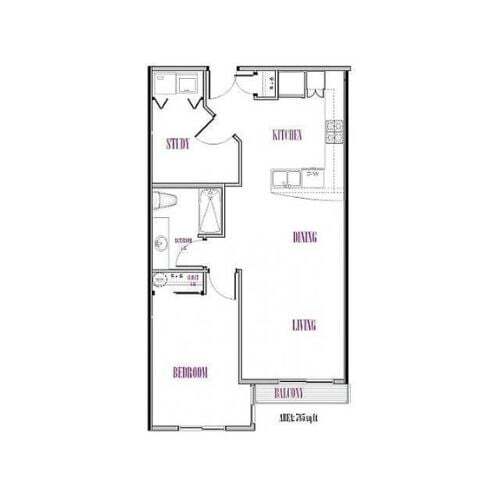 Apartment Model: A02From $2,2121 Bedroom, 1 Bath, 770 sq ftAvailable NowFloor plans are artist's rendering. All dimensions are approximate. Actual product and specifications may vary in dimension or detail. Not all features are available in every rental home. Please see a representative for details.
