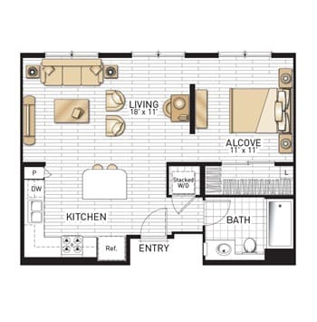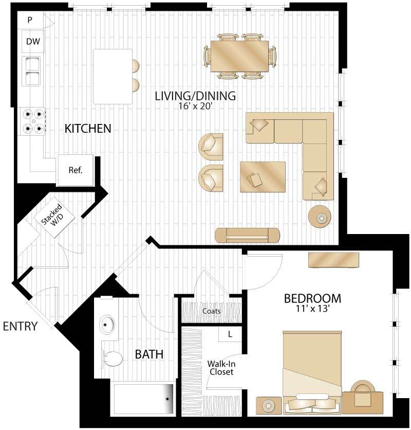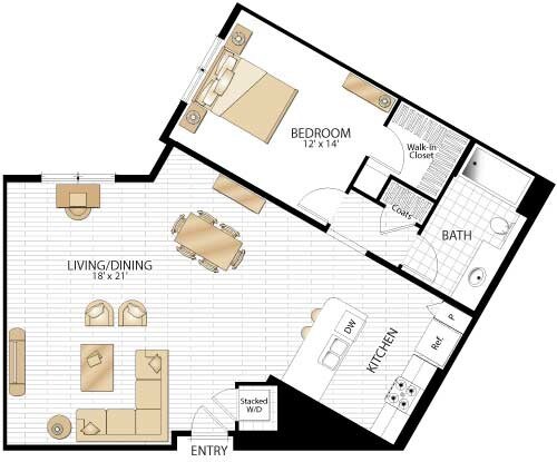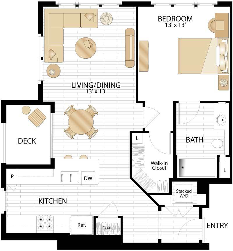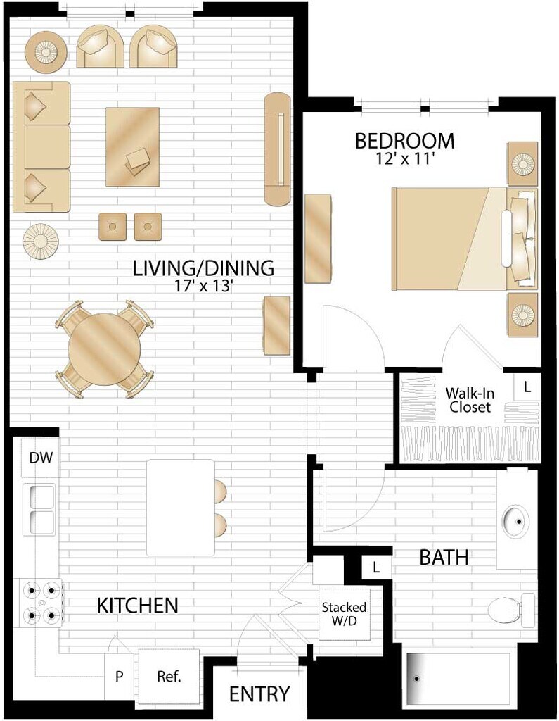 Studio, 1 Bath, 640 sq ftAvailable NowModel Gallery