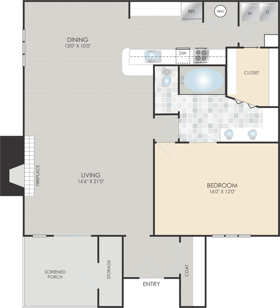 1 Bed, 1 Bath, 1313 sq ftModel Gallery