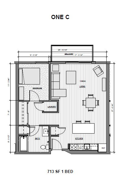 1 Bed, 1 Bath, 713 sq ftAvailable NowModel Gallery