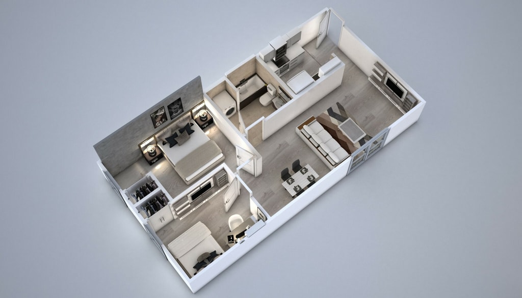2 Beds, 1 Bath, 800 sq ftModel Gallery