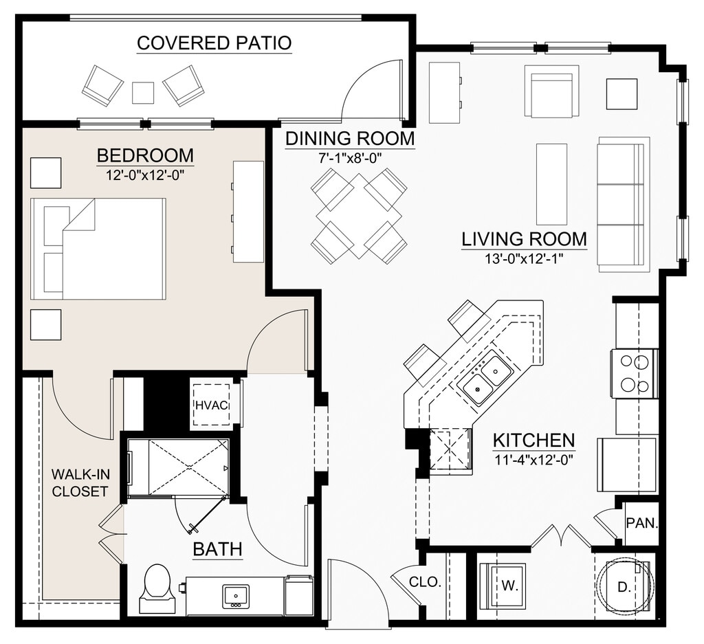 Apartment Model: A1From $1,3891 Bedroom, 1 Bath, 693 sq ftAvailable Now![]()