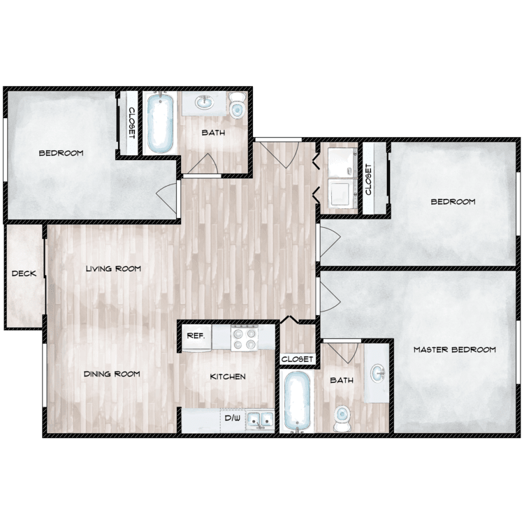 3 Beds, 2 Baths, 930 sq ftModel Gallery
