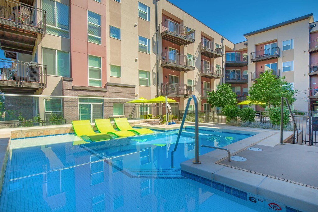 Experience the ultimate urban lifestyle at Park Place Olde Town. Our luxurious apartment community is situated in the heart of Olde Town Arvada, Colorado. Our selection of one and two bedroom floor plans are a superb combination of comfort and elegance. Our residences are well appointed with the finest of features, including stainless steel appliances, quartz countertops, designer cabinets, laminate plank flooring, and spacious walk-in closets. Your living space is extended with a balcony or patio where you can take in the stunning views of the city and surrounding mountains. Residents have access to three elevated courtyards that feature a pool and grilling stations. Exercise your mind and body at our state-of-the-art fitness center or enjoy a complimentary cup of coffee at our contemporary lounge. Spend time with your pet at the grooming station and adjoining McIlvoy Park Schedule your tour today and discover the life you've been dreaming of at Park Place Olde Town.