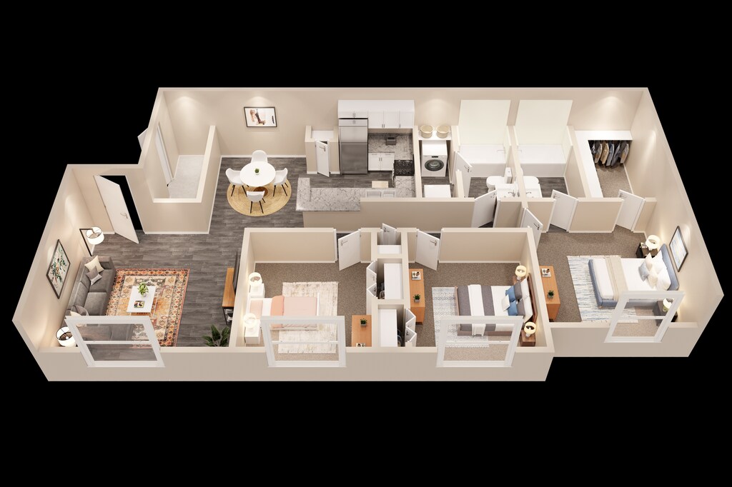 3 Beds, 2 Baths, 1100 sq ftAvailable NowModel Gallery