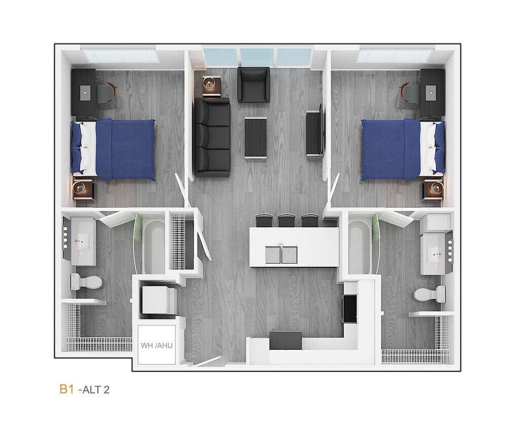 2 Beds, 2 Baths, 776-834 sq ftModel Gallery