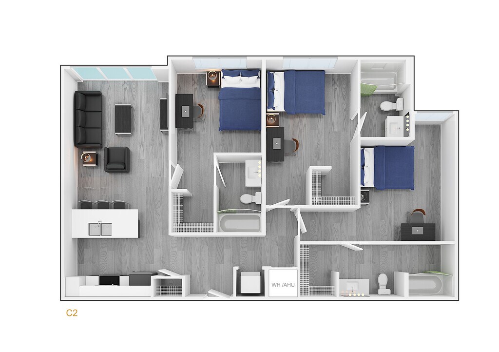 Apartment Model: Three Bedroom3 Bedroom, 3 Bath, 1147-1376 sq ftUnavailable![]()