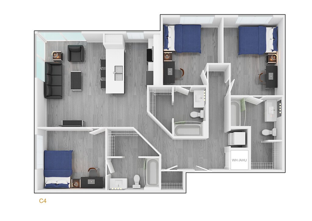 3x3 Premium - Floorplan 3 Apartment Unit: PrivateApartment Model: 3x3 Premium3 Bedroom, 3 Bath, 1147 sq ftAvailable Now3x3 ANSI Type-A