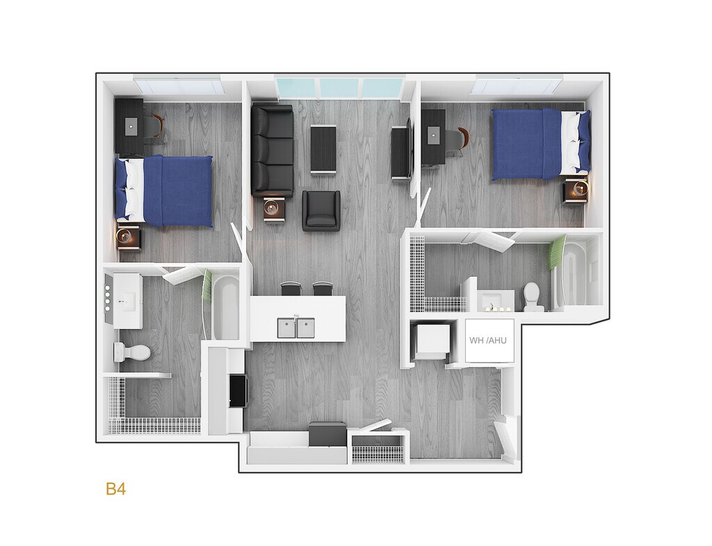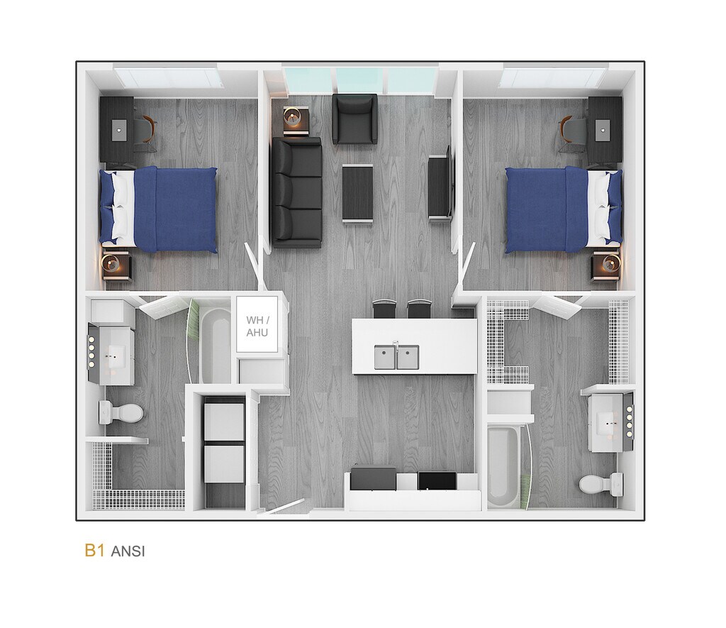 2x2 - Floorplan 5 Apartment Unit: PrivateApartment Model: 2x22 Bedroom, 2 Bath, 841 sq ftAvailable Now2x2 ANSI Type-A